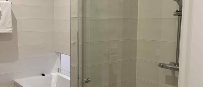 Bathroom with shower and bathtub